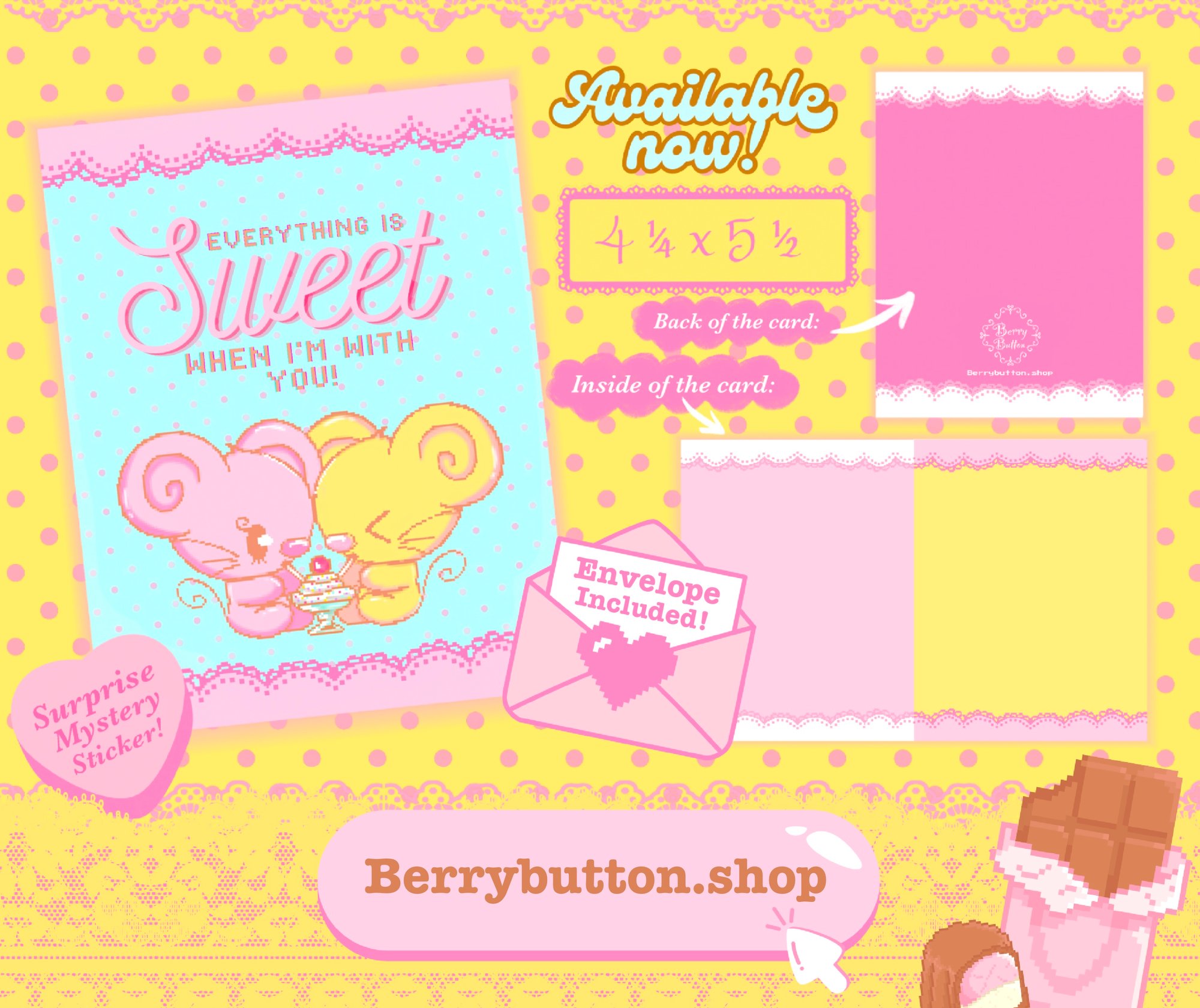 ❦ Includes a pink envelope & a surprise mystery sticker!