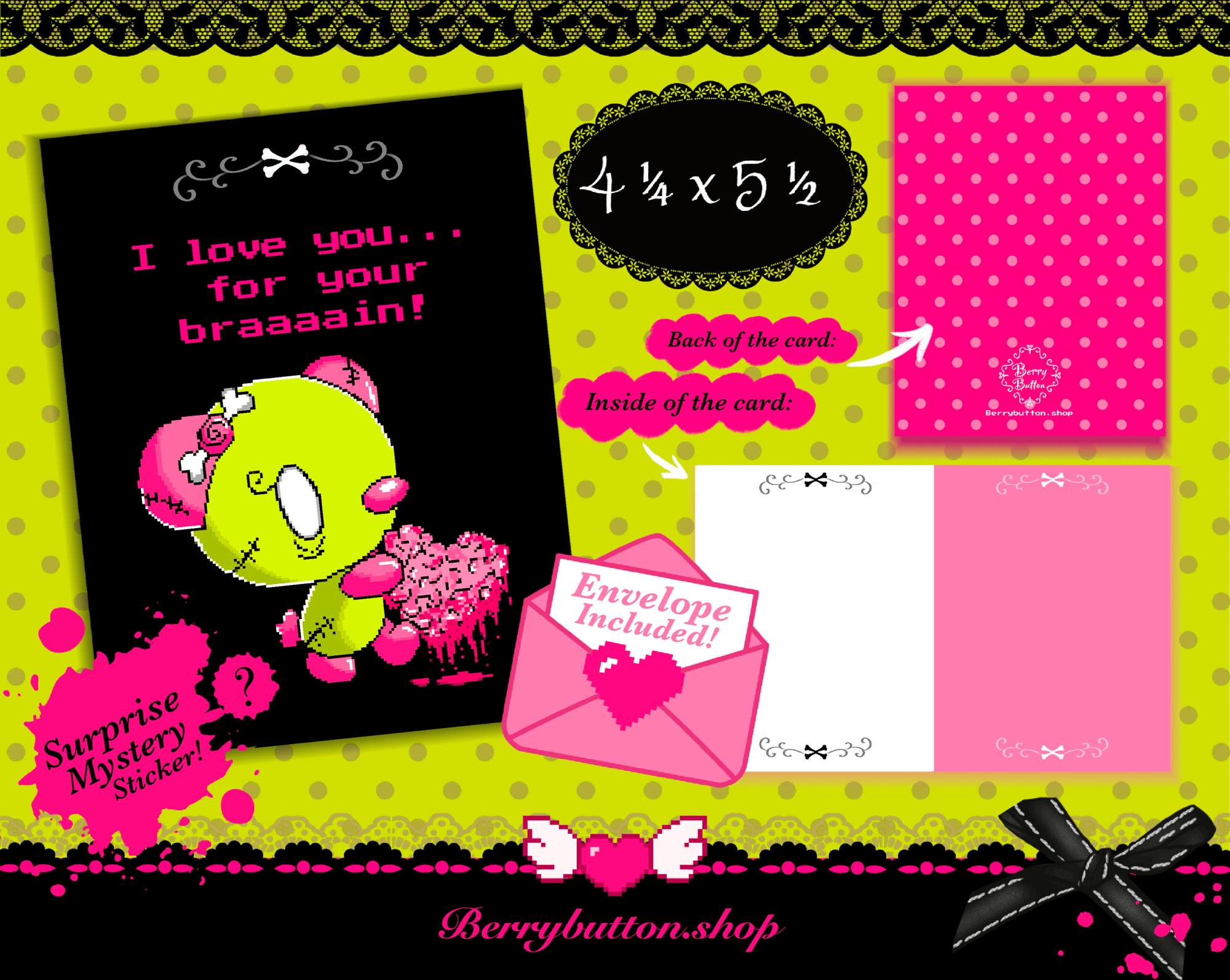 ❦ Includes a pink envelope & a surprise mystery sticker!